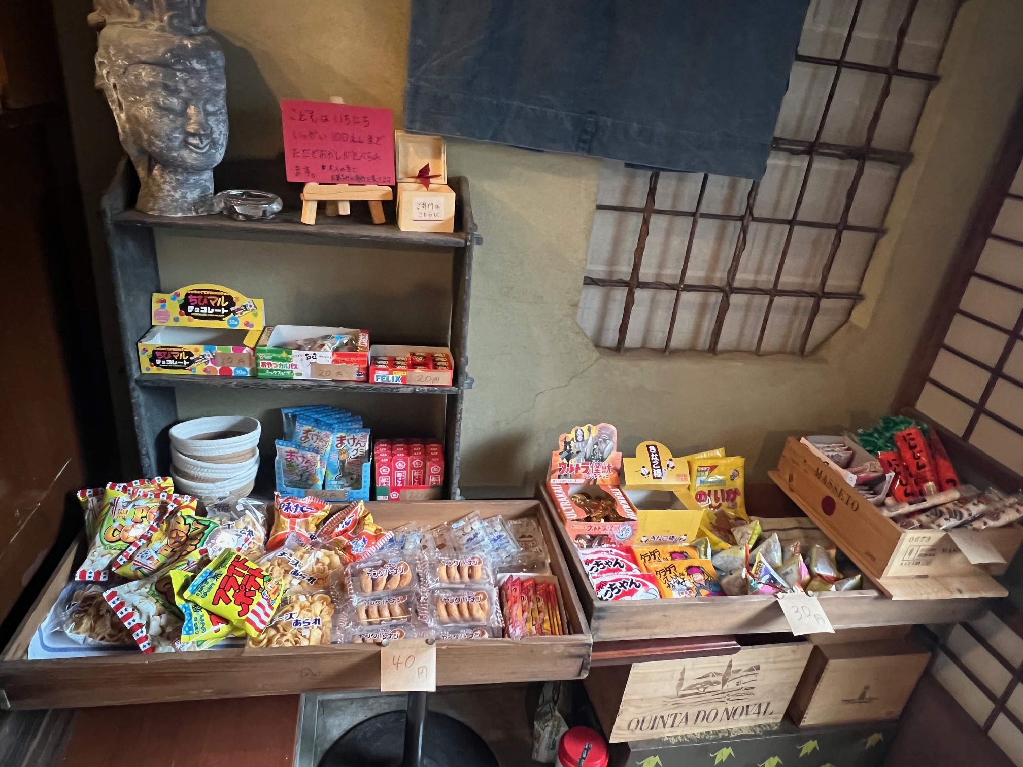 風六堂においてある駄菓子は、子どもは1日1回100円まで無料でもらうことができます。代金は、大人に寄付してもらいます。