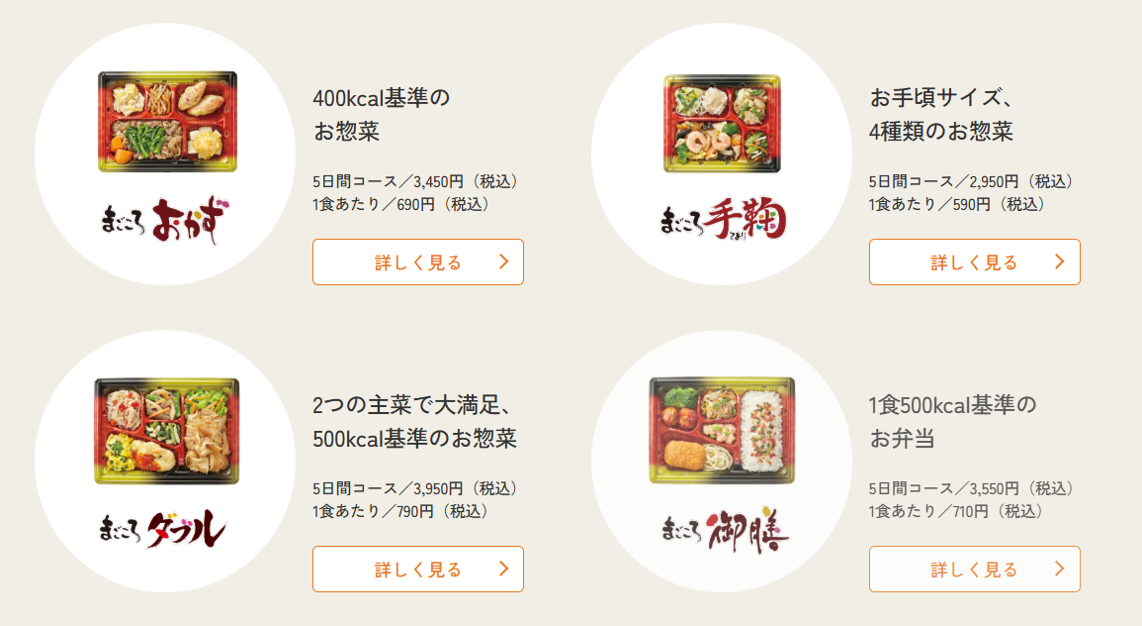 有償 おかずのみ:1食450円(税込)~ ごはんつき:1食470円(税込)~