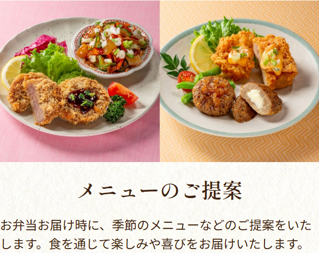 栄養バランスや見栄えにもこだわる当店のお弁当で、 高齢者の方に楽しんでお食事をしていただき、 地域に密着したぬくもりのある便利さをお届けします。